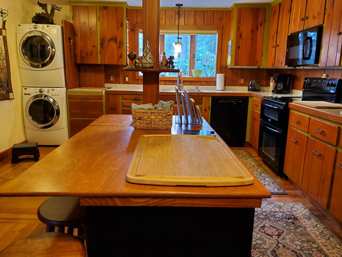 Ļaujieties mieram mūsu mierīgajā atpūtas vietā dzirnavās Dienvidu Ņujorkā. Šī vēsturiskā telpa, ko rotā oriģināli kokmateriāli, lauku ķieģeļi un augstie 11 pēdu griesti, piedāvā plašu 2650 kvadrātpēdu patvērumu. Atpūtieties vannā vai izbaudiet nomierinošos ūdenskrituma skatus no terases. Ērti netālu no pilsētas centra, bet pietiekami tālu, lai netraucētu mieru. Laipni lūdzam nomierinošajā atpūtā atpūtai un atjaunošanai. Attālināta darbinieka sapņu birojs ar ātru interneta savienojumu un īpašu attālinātu darba vietu