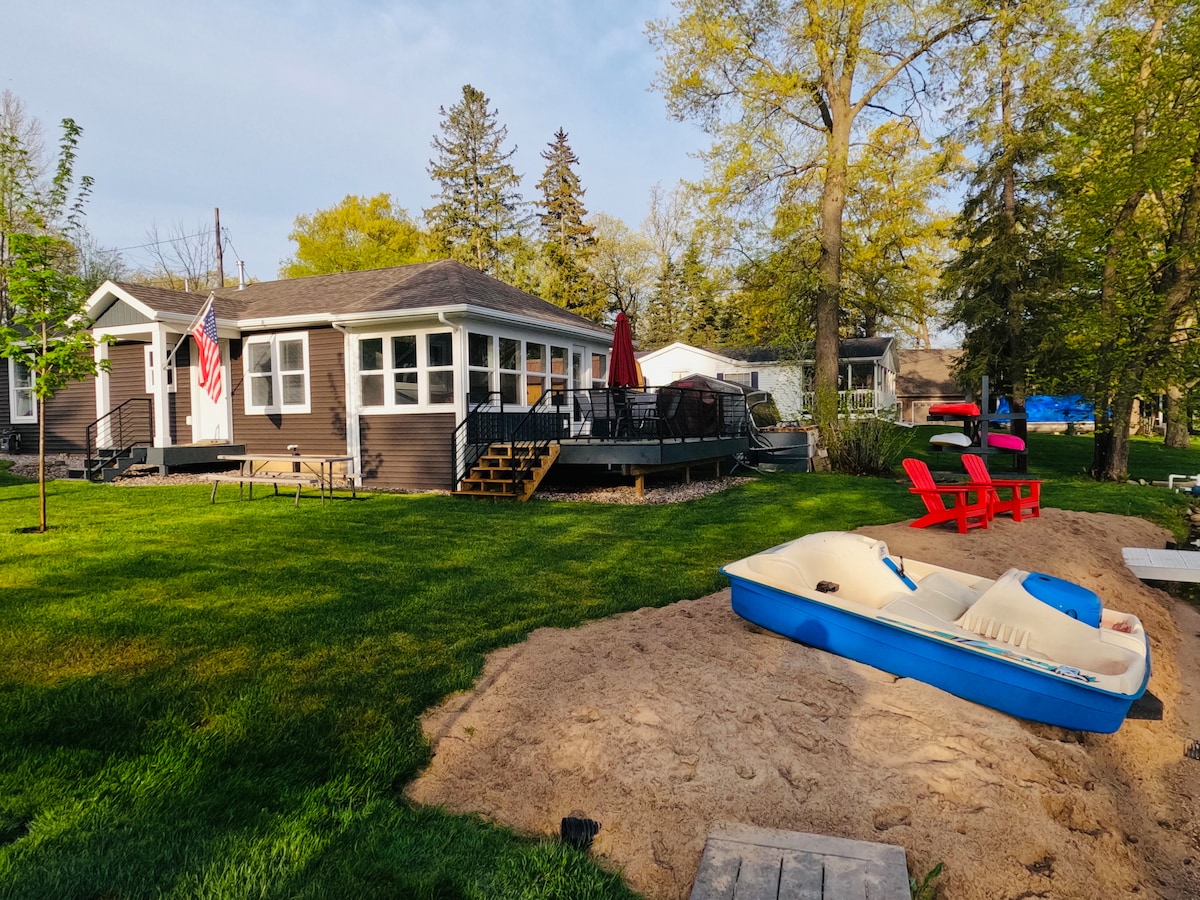 Laipni lūdzam kotedžā pie Priežu ezera! Šis dīvainais, pilnībā atjaunotais mājoklis ir gatavs nākamajam ceļojumam. Atrodoties klusā ezera apkārtnē Cedar Springs, Mičiganā, jūs būsiet tuvu visām aktivitātēm, ko piedāvā Rietummičigana. Mājokļa papildērtību klāstā ietilpst plaša dzīvojamā telpa ar bagātīgu atjauninātu aprīkojumu un apdari, veļas mazgājamā mašīna/žāvētājs, Wi-Fi + kabeļtelevīzija, duša, duša, duša, burbuļvanna, ugunskura vieta, grils, kajaki un piekļuve ezeram Pine Lake atrodas tikai dažu soļu attālumā no jūsu durvīm.