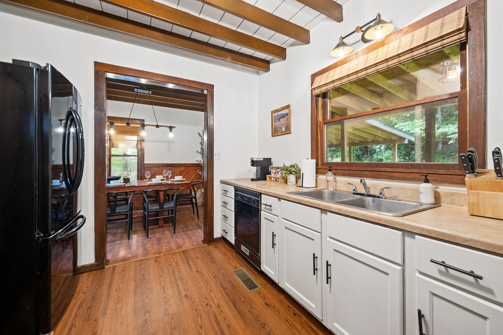 Cabin On The Creek, kas atrodas skaistajā Alleghany kalnu grēdā, ir pēc pasūtījuma būvēts luksusa namiņš ar lielisku skatu un piekļuvi Potts Creek privātam mežainam īpašumam. Vairākas āra zonas, kur baudīt upītes skatus un skaņas, ir aizmugures veranda, skatu laukums ar Adirondakas krēsliem un pastaigu ceļš, no kura paveras brīnišķīgs skats uz Potskrīkas "Izlietnēm". Izbaudiet mierīgo dabisko vidi, izmantojot āra grilu, piknika vietu, ugunskura vietu un burbuļvannu.
