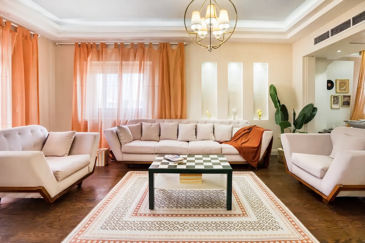 Modern 3BR Villa in New Cairo’s Fifth Settlement • Private garden & garage parking • Quiet central area near Cairo Festival City, Point 90 & Downtown Katameya • Fast Wi-Fi & full kitchen • Family & pet-friendly • Easy self check-in with smart lock • 24/7 host support — ideal for business trips or family getaways • Close to malls, cafes & parks — perfect for short or long stays ideal for families, business travelers, and long-term stays seeking comfort and privacy in New Cairo’s Fifth Settlement