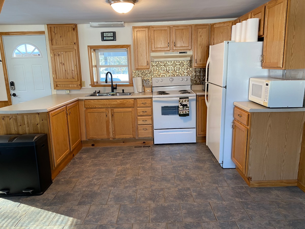 Mēs piedāvājam visu, lai jūs justos kā mājās. Mēs arī esam piemēroti mīļdzīvniekiem. Izbaudiet savu telpu ar privātu ieeju, 1 guļamistabu (divguļamā gulta ar apsildāmu matraci, ja nepieciešams), kā arī papildu guļvietu uz izvelkamas dīvāngultas. *Pieejams arī piepūšamais matracis un/vai piepūšamā bērnu gulta papildu guļvietai (pēc pieprasījuma)* Pilnībā aprīkota virtuve un vannasistaba ar pilna izmēra veļasmašīnu/žāvētāju. Piecas minūtes līdz robežas šķērsošanai uz Menu, ASV (Fortkentu). Tuvu slēpošanas kūrortiem (5 minūtes) un gleznainām sniega motociklu takām.