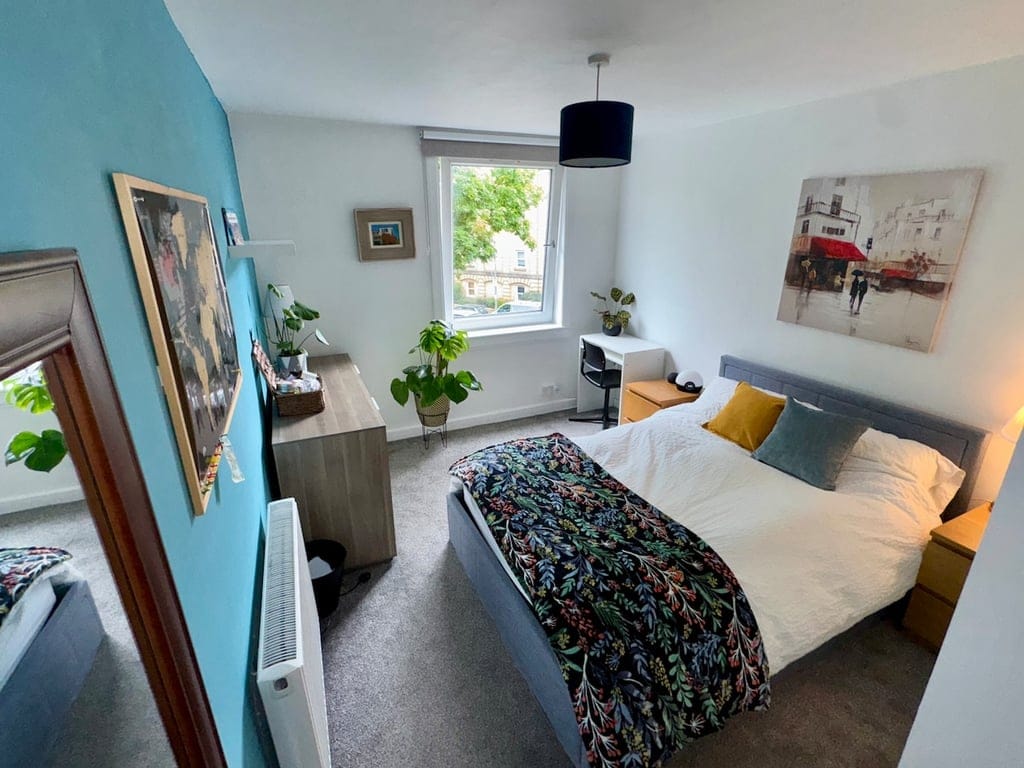 Šis dzīvoklis atrodas dažu minūšu attālumā no Edinburgas pilsētas centra un universitātes burzmas, taču tomēr atrodas ļoti mierīgā un klusā koku ieskautā ielā blakus plašajam Pļavu parkam un netālu no Edinburgas Holyrood parka un Arthurs sēdvietas. Ir daudz lielveikalu, kafejnīcu, krogu un transporta iespēju dažu minūšu attālumā no durvīm. Dzīvoklis ar dāsnām istabām ir silts un ērts, un tas ir brīnišķīga bāze pilsētas baudīšanai vai universitātes apmeklēšanai.
