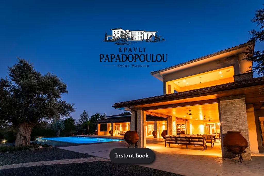 Laipni lūdzam Epavli Papadopoulou – pielāgojamā, elegantā atpūtas vietā, kas paredzēta ģimenes brīvdienām, sanāksmēm ar draugiem, kāzām vai korporatīvajām atpūtām. Atpūtieties pie baseina vai kamīna, izbaudiet nobriedušos dārzus un iepazīstieties mājīgās iekštelpās un āra zonās – mājoklī, kur katrs mirklis kļūst par atmiņu. 👉 Sūtiet mums ziņojumu, un mēs palīdzēsim jums izplānot katru viesošanās vai pasākuma detaļu!