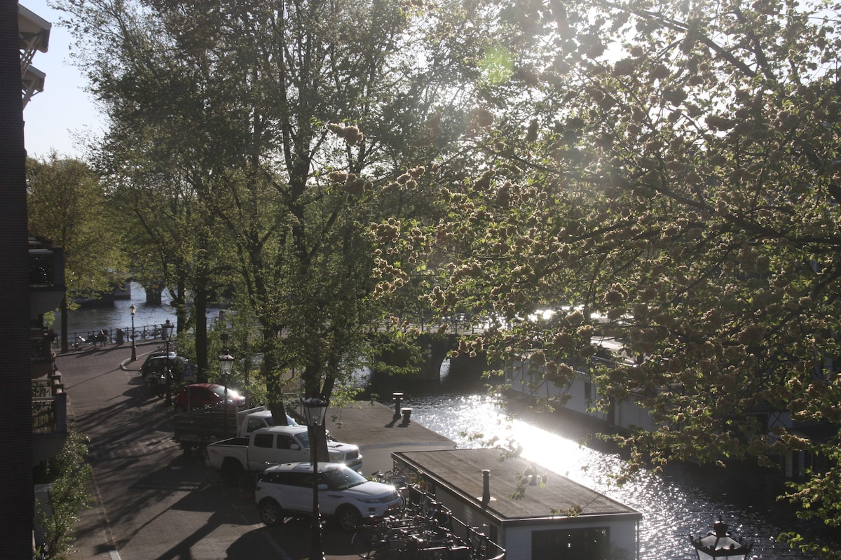 Voted the most beautiful houseboat in the Netherlands! With its unique location right next to the Skinny Bridge (Magere Brug), this houseboat offers a unique Amsterdam experience with breathtaking views. Wake up to the sound of lapping water beneath you, sip your coffee on the deck, and experience the city like a local. This houseboat offers comfort, tranquility, and a unique atmosphere. Close to the city center, yet far from the hustle and bustle. An authentic stay you won't soon forget!