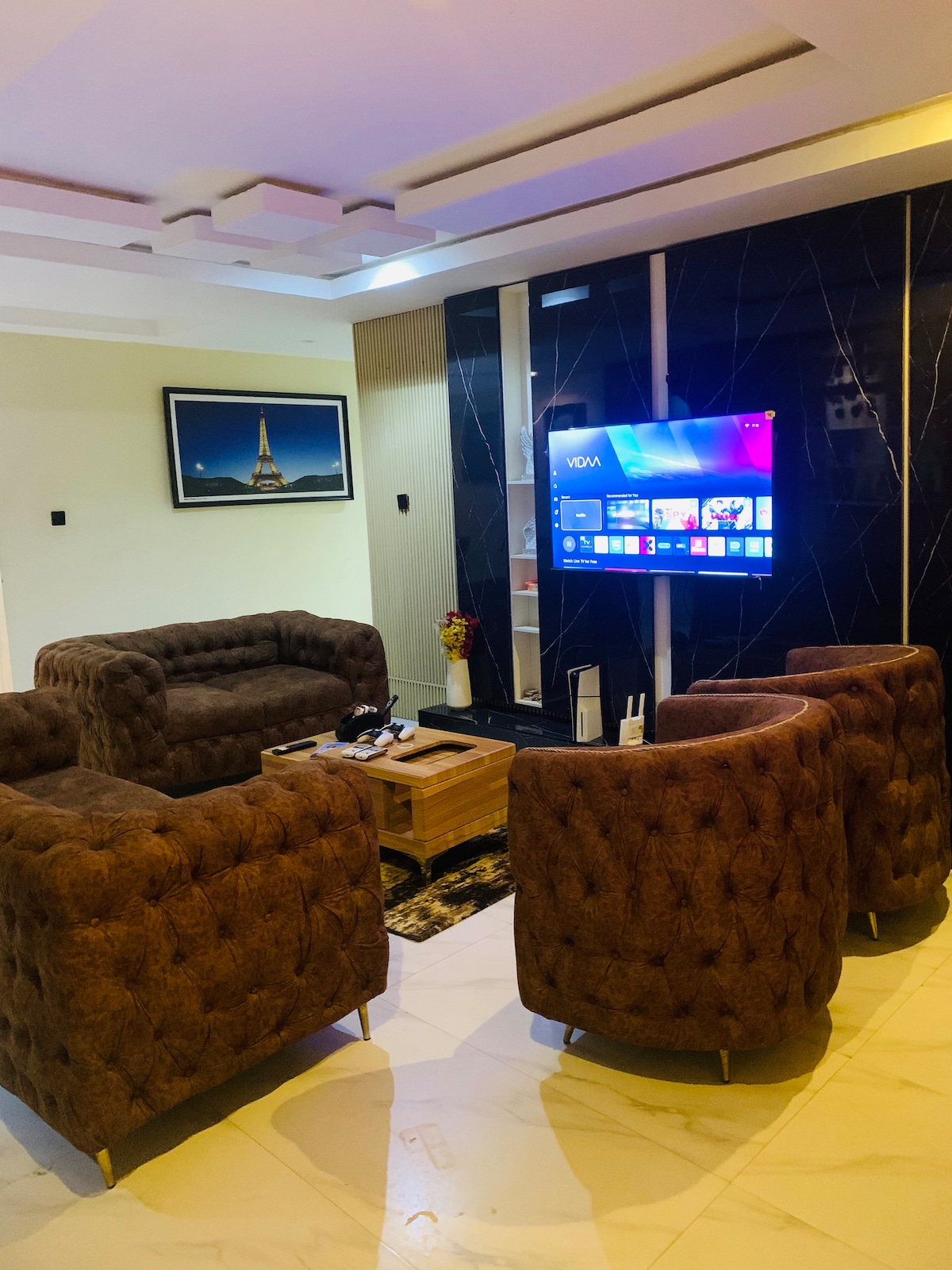Experience total luxury, privacy and exceptional comfort in this Cozy 3bedroom apartment in Abuja. Nestled in a serene residential area. Designed for families, groups who value their own space. This home features three spacious bedrooms with our plushed double sized beds, each with its own private ensuite bathroom.... Enjoy 24/7 power with high speed Wi-FI and the luxury of having the entire property to yourself. With easy access to the heart of Abuja