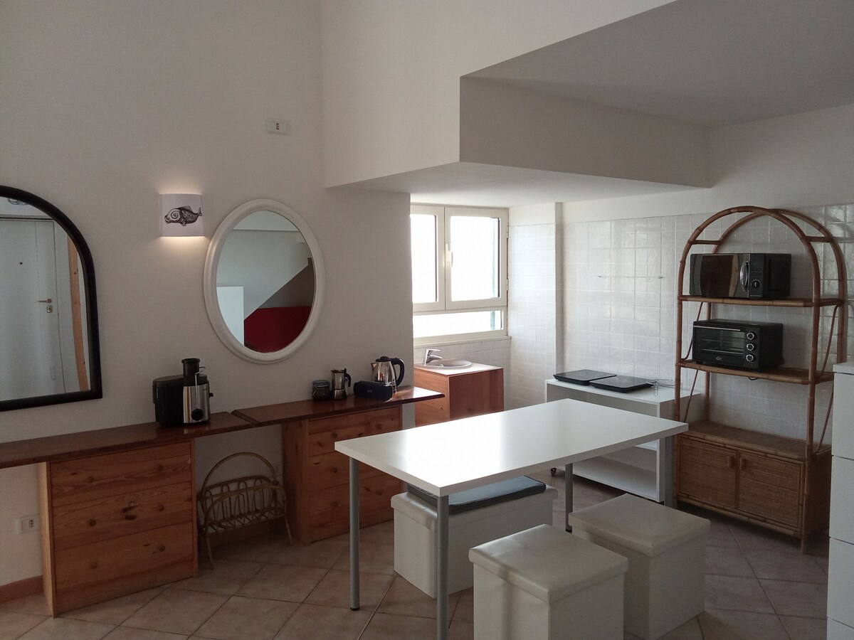 Dzīvoklis ar skatu uz jūru tikai 3 metru attālumā no ūdens. Šajā brīnišķīgajā dzīvoklī jūs atradīsiet visu veidu komfortu: Wi-Fi, 2 gultas, 2 vannasistabas, dzīvojamo istabu ar televizoru, brīnišķīgu loftu ar guļamistabu un nelielu virtuvi, lai pagatavotu romantiskas vakariņas. Jums būs neliela terase, kur varēsiet pusdienot un brokastoties burtiski virs ūdens. LAI NONĀKTU ŠAJĀ APBURTAJĀ DZĪVOKLĪ, VIENKĀRŠI NOEJIET PA GARĀM KĀPNĒM, KAS JŪS IEVADĪS PASAKU PASAULĒ