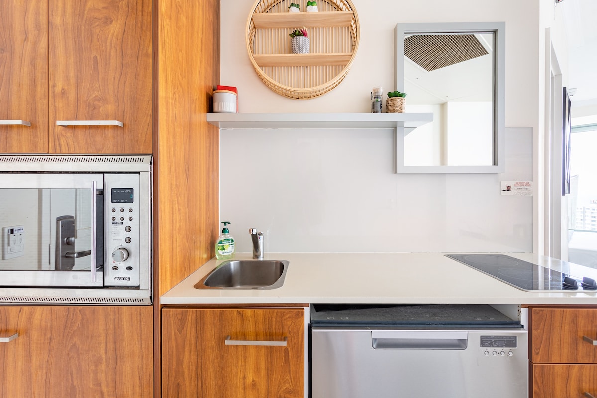 Lieliska cena par šo stilīgo augstākās klases viesnīcas numuru viesnīcā Legends Hotel @ 25 Laycock Street ar lielisku skatu uz okeānu, karaļa gultu un minivirtuvi. Atrašanās vieta ir tikai dažu soļu attālumā no pludmales un visiem restorāniem un iepirkšanās vietām Cavill Ave. Ietver neierobežotu internetu/gaisa kondicionieri/ apkuri /TV ar YouTube (un Netflix, ja jums ir konts)/ ledusskapi/elektrisko plītiņu/katlus/tosteri/mikroviļņu krāsni/ šķīvjus/galda piederumus Visās bildēs ir redzama tieši šī istaba. (Nav zema stāva istaba, kas vērsta tikai uz ielu!) Apskatiet simtiem atsauksmju!