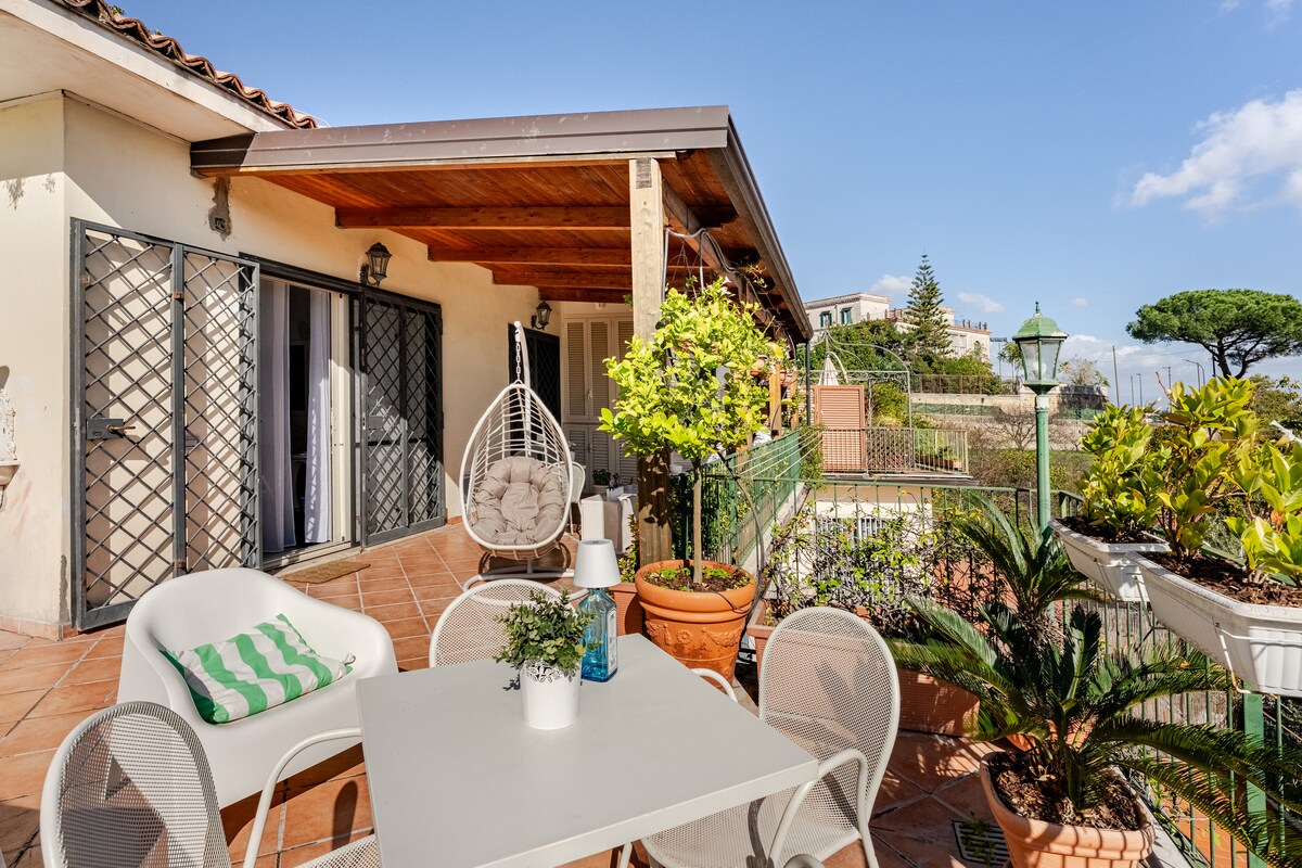 Enjoy a unique experience in the lovely Suite with a panoramic terrace overlooking Vesuvius+breakfast and Wine as a welcome gift.With this accommodation in the center of Naples your family will be close to everything!The strategic position in a safe area makes Mazzocchi the ideal choice for those visiting the city.The house is cozy,bright with4beds,super equipped kitchen,in a historic building with elevator.FastWiFi,Free parking or H24secure parking.Transfer/tour service.Dedicated assistance24/7