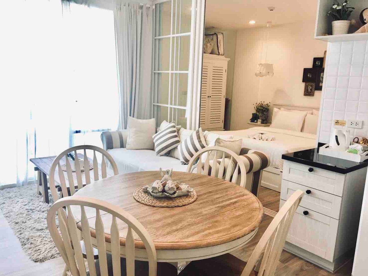 Sapņojiet, ka atpūšaties pludmalē un redzat saulrietu dienā savās acīs ✔Kluss pludmales dzīvoklis ar privātu baseinu un pludmali. ✔Pārveidojiet viesistabu citā privātā guļamistabā 2 pāriem, draugiem vai ģimenei. ✔Pavisam jauna istaba tikko pabeidza visu renovēt 2022. gadā. ✔Gluži kā 5 zvaigžņu viesnīcas "In-Room" papildērtības. ✔Blakus lielveikalam un 7-11. ✔*** Es garantēju absolūti privātu uzturēšanos. Nekādas dalīšanās, nekādu traucējumu. ✔*** Supersaimniekiem draudzīgs diennakts atbalsts, ko sniedz น้องมังคุด
