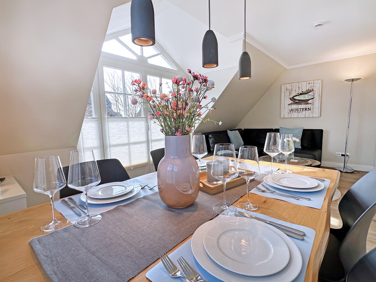 Mūsu "Liese" 2-3 personām ir skaidra, spilgta un atvērta ziemeļu stilā. No 2021. līdz 2022. gadam mājas pagrabs bija pilnībā atjaunots un aprīkots ar kārtīgu interjeru. 60 kv. m dzīvoklis ietver lielu integrētu viesistabas un virtuves zonu, plašu guļamistabu un modernu vannasistabu ar lietus dušu. Mājas aizmugures izeja ved uz dārzu - tā stiepjas tieši līdz Schlei un tai ir sava laivu piestātne ar peldvietām.