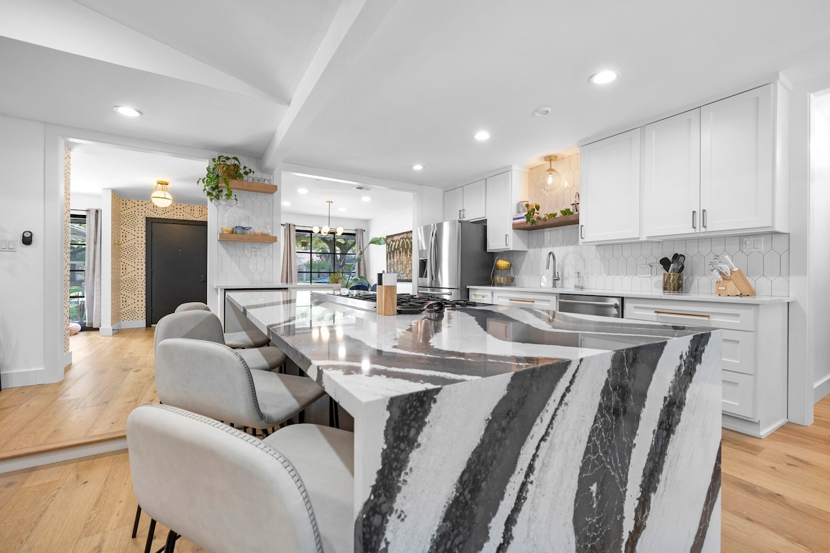 Ostinas viesu iecienītākais Airbnb! Mūsdienīgs komforts un unikāls stils - šī atpūtas vieta ir jūsu ideālais patvērums, kur atpūsties un iepazīt Ostinu. Aktualitātes: •Piemērots mīļdzīvniekiem: liels, nožogots pagalms •Atpūtieties: jauni matrači un gultasveļa •Šefpavāra virtuve: pilnībā nokomplektēta! • Dzīvošana brīvā dabā: segta ēdamistabas terase • Piemērots darbam: ātrgaitas 1 GB šķiedras internets •Daba: jūdžu attālumā atrodas drošas takas > 5 minūšu attālumā •Galvenā atrašanās vieta: labākās apskates vietas tuvumā •Tīrs un drošs: nevainojama tīrība klusā apkaimē