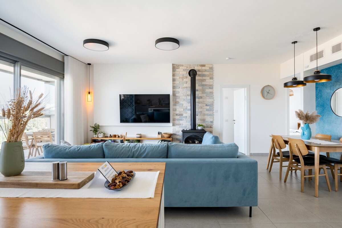 Take it easy at this unique and tranquil getaway. Enjoy and relax in this beautiful modern apartment with spectacular views of the lake kinneret, Mt Hermon Ramon and safed. Get a good night's rest with imported mattresses from the USA. Apartment features a strictly kosher kitchen with two sinks.