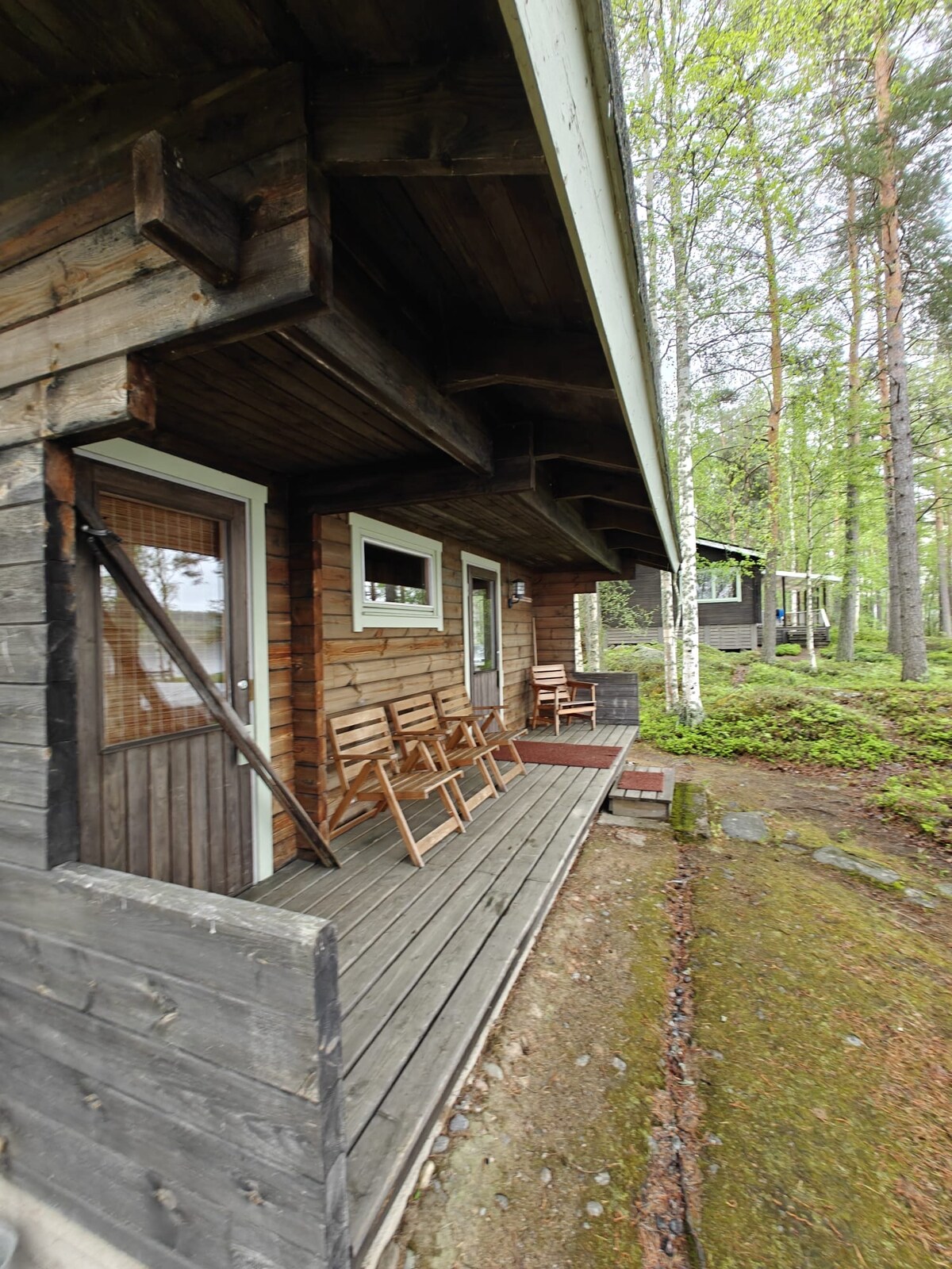 Izbūvēta no 1950. gadu guļbūves, mierīgas kotedžas ar vietu divām ģimenēm vai draugu grupai, ko apskatīt un pieredzēt dabas vidū. Tradicionāls, bet ar ērtībām: tualete, elektrība un braukšana, tīrākais (aukstais) ūdens Mualimā. Sulīgs tvaiks koka pirtī un iegremdēšanās Nurmesjärvi no savas seklās smilšu pludmales. Airu laiva, SUP dēlis un makšķerēšanas piederumi sagādā prieku mājai. Istabā kamīns ienes gaisotni galda spēļu naktī. Augšpusē 2mh.