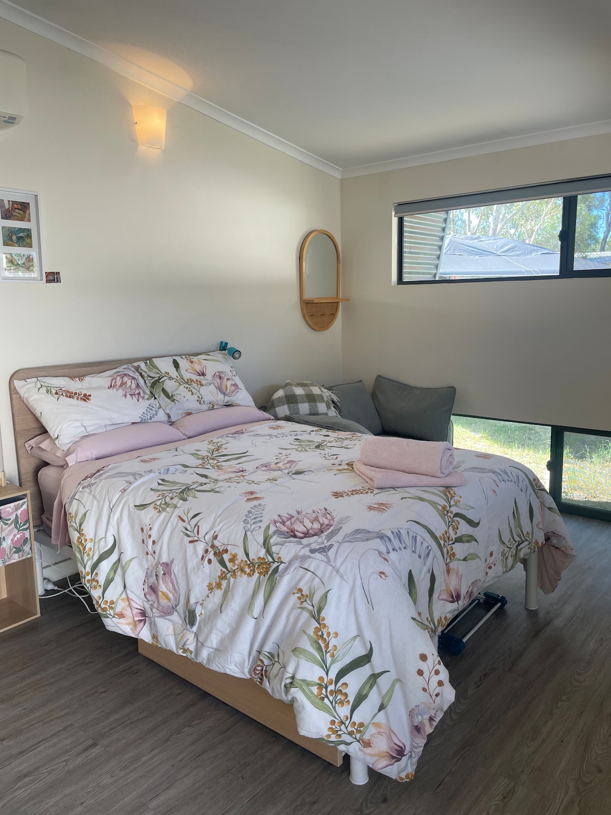 Šajā autonomajā un drošajā vecmāmiņas dzīvoklī "Mazajā mājā" ir daudz dabiskā apgaismojuma. No apvienotas dzīvojamās/guļamtelpas paveras vietējais dārzs un terase, ko bieži apmeklē vietējie putni. Dīvāngulta ir papildu elastība miegam. Pirmajā naktī pēc izvēles pieejamas brokastis, vienkārši pajautājiet! Atrodas klusā Braitling ielā, 7 minūšu brauciena attālumā no Alises CBD. Mēs ar lepnumu esam draudzīgi LGBTQI+. Cāļi un mazi bērni ir galvenās mājas iemītnieki.