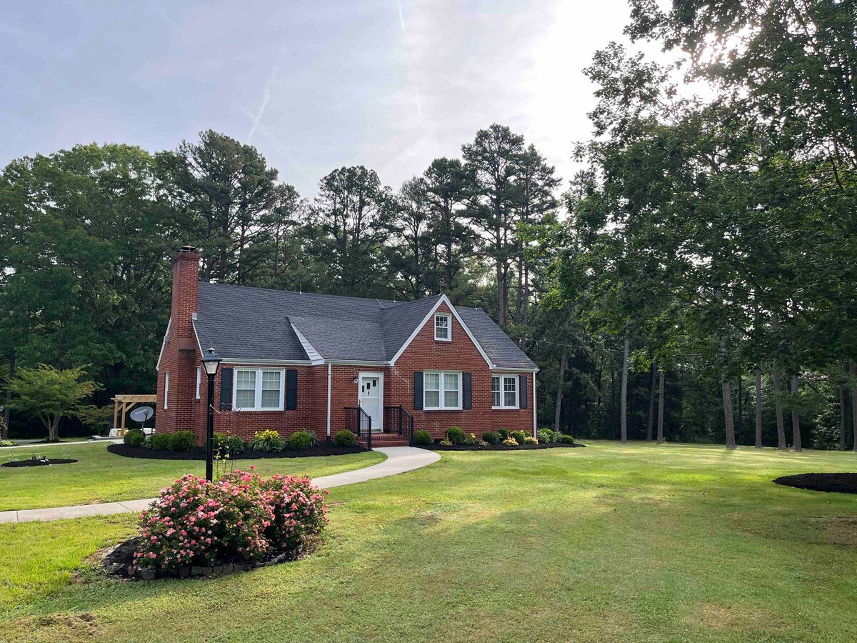 Unwind in a private mini retreat- enjoy waking up in the king size bed to forest views, birdsong, and a front porch made for sitting! Listen to rain on the tin roof or enjoy a bonfire in the fire pit after taking a stroll down our private wooded trails or wading in the creek. Stay connected with WiFi, or just cozy up with a book or a game. Wildlife abounds on this woodland plant farm. Approximately 15 minutes from downtown Blackstone and Ft. Pickett, this is the perfect place to get away!