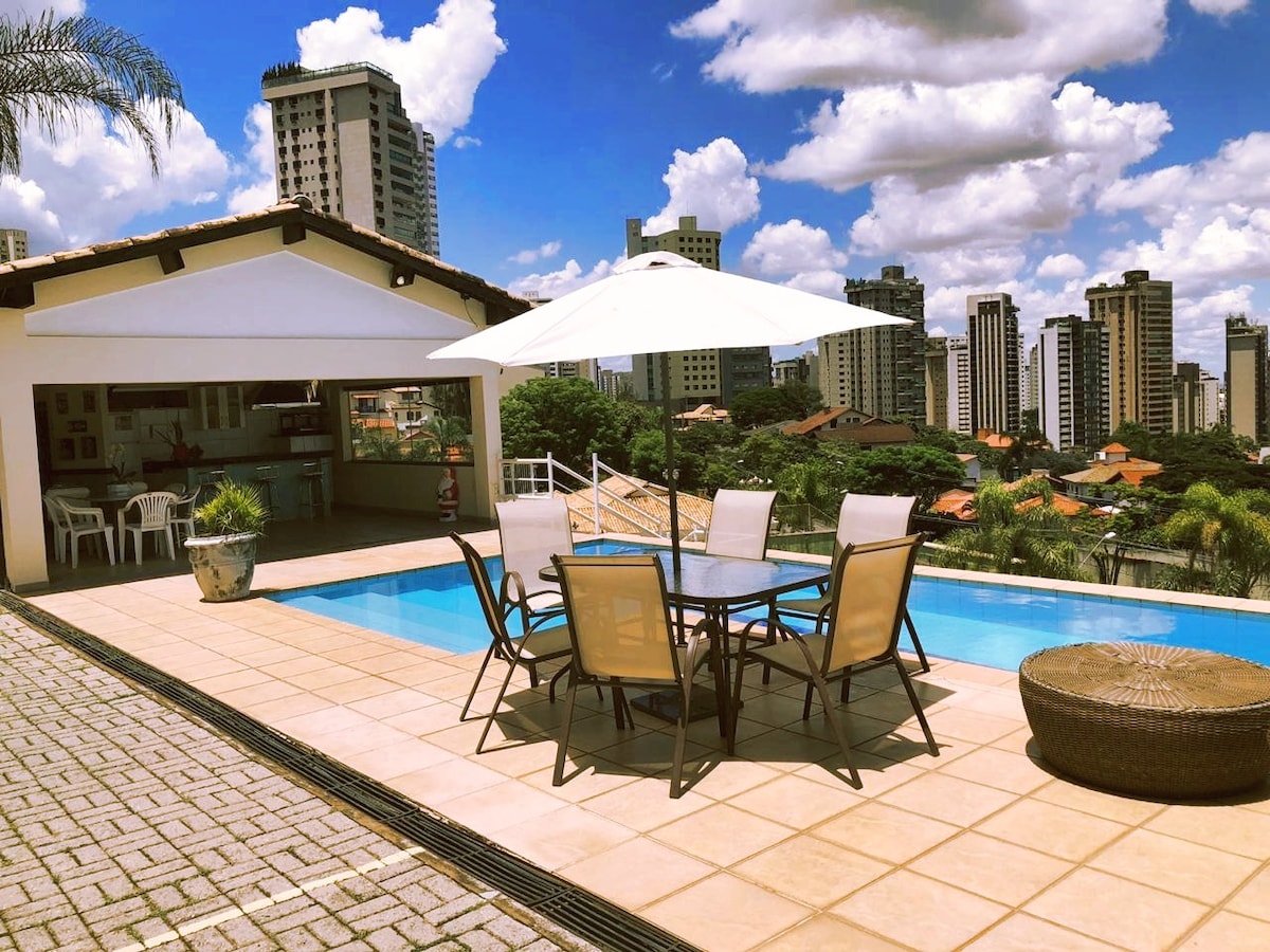 Linda Casa Belvedere, ar apbrīnojamu skatu, atšķirīgu dizainu, netālu no BH Shopping, Biocor un Vila da Serra. Wi-Fi, viedtelevīzija, istabas skapīši, virtuve, veļas mazgātava, gardēžu zona un brīnišķīgs bezgalības baseins. Ērta piekļuve visai pilsētai, netālu no restorāniem, bāriem un vairākām BH apskates vietām. Rezervācijām no 10 viesiem mēs piedāvājam papildu mājokli. Mūsu mājoklis ir lieliski piemērots pāriem, darījumu ceļotājiem un ģimenēm. Priecāsimies jūs sveikt!