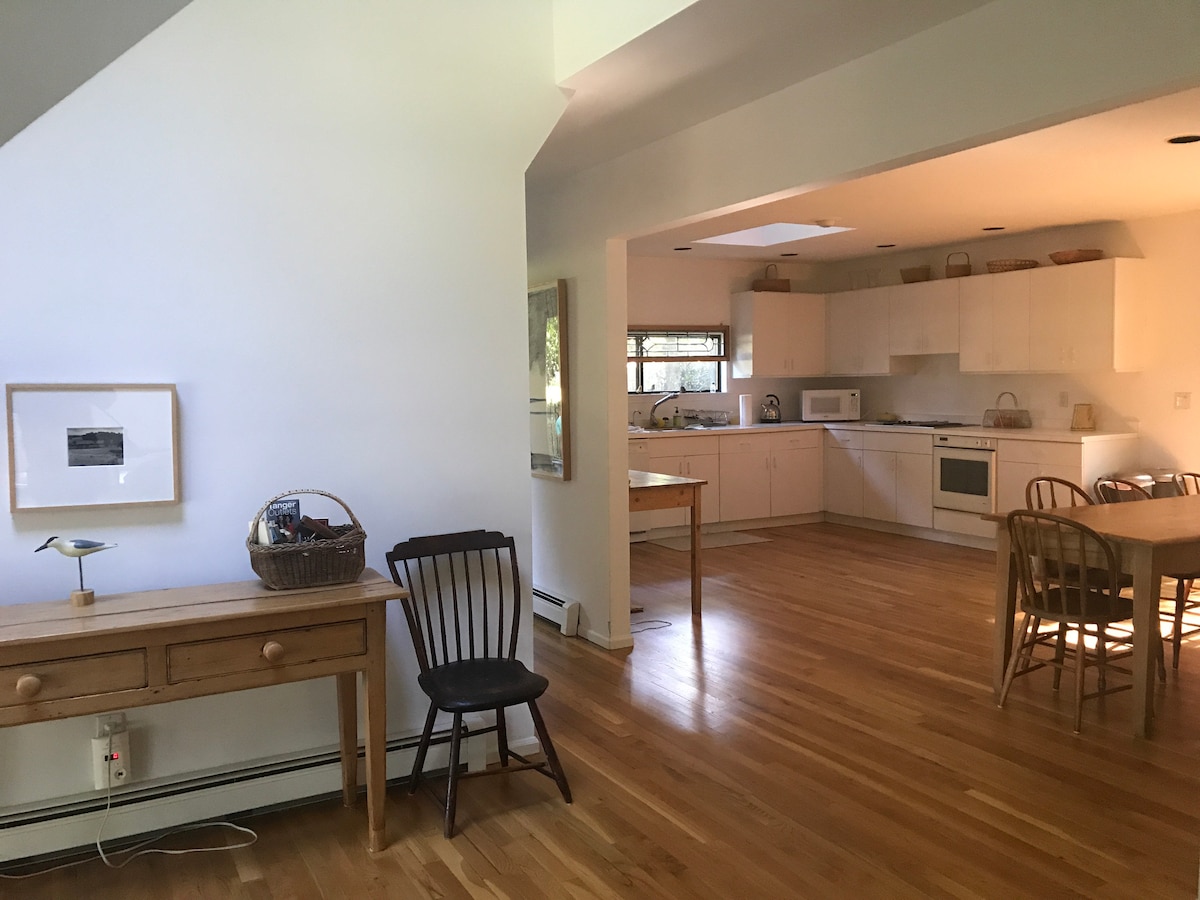 Tucked in the quiet woods of Sag Harbor, yet only 10 minutes to town. Minutes away is Morton’s Wildlife Refuge, a nature preserve that offers a beautiful walk to the beach, and if you're lucky birds may even eat from your hand. Long Beach is 5 minutes away (day passes available). Your private entry is the white door atop the wooden stairs. Ideal for couples to cook, unwind, and spin records.
