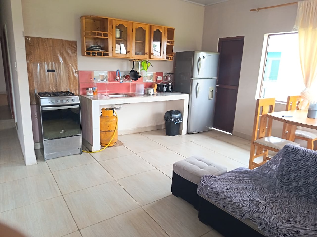 Laipni lūdzam jūsu mājoklī Nuevlohā! Mūsu dzīvoklis apvieno komfortu un nepārspējamu atrašanās vietu jūsu Amazon piedzīvojumam. Izbaudiet mājīgu viesistabu un pilnībā aprīkotu virtuvi. Galvenajā guļamistabā ir ērta divguļamā gulta ideālai atpūtai. Jūs atradīsieties dažu soļu attālumā no restorāniem, veikaliem un Centrālparka. Viegla piekļuve tūrisma operatoriem un transportam. Ideāli piemērots pāriem vai individuāliem ceļotājiem, kuri vēlas izpētīt vietējo kultūru un bagātīgo dabu.