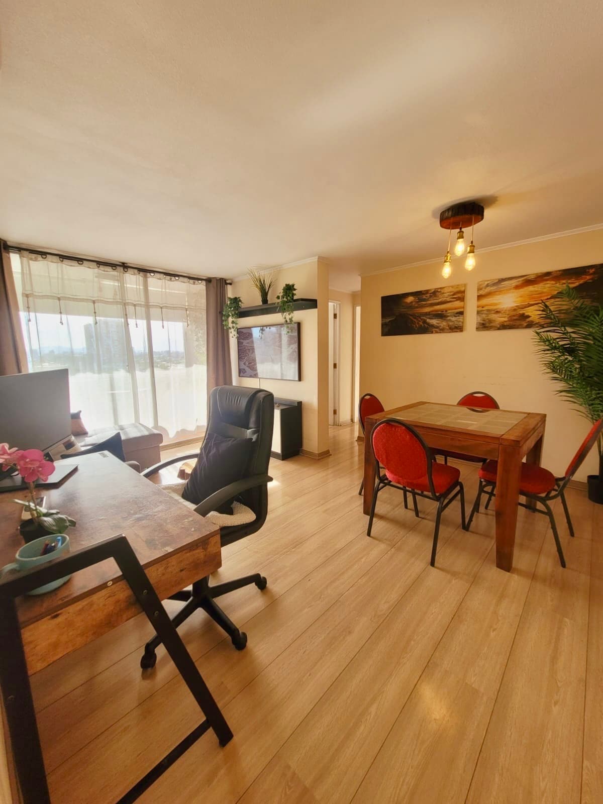 Déjate cautivar por un espacio donde cada elemento fue cuidadosamente elegido. Con una decoración que mezcla lo moderno con lo natural. Se te ofrece vista despejada, luz natural, y una atmósfera cálida para que tu experiencia sea perfecta. Equipado con SmartTV, WiFi alta velocidad, cama matrimonial, cocina funcional y detalles que enamoran. A solo pasos del metro, con acceso a los mejores sectores de Santiago. Si necesita Parking podemos alquilar 1 lugar dentro del condominio.