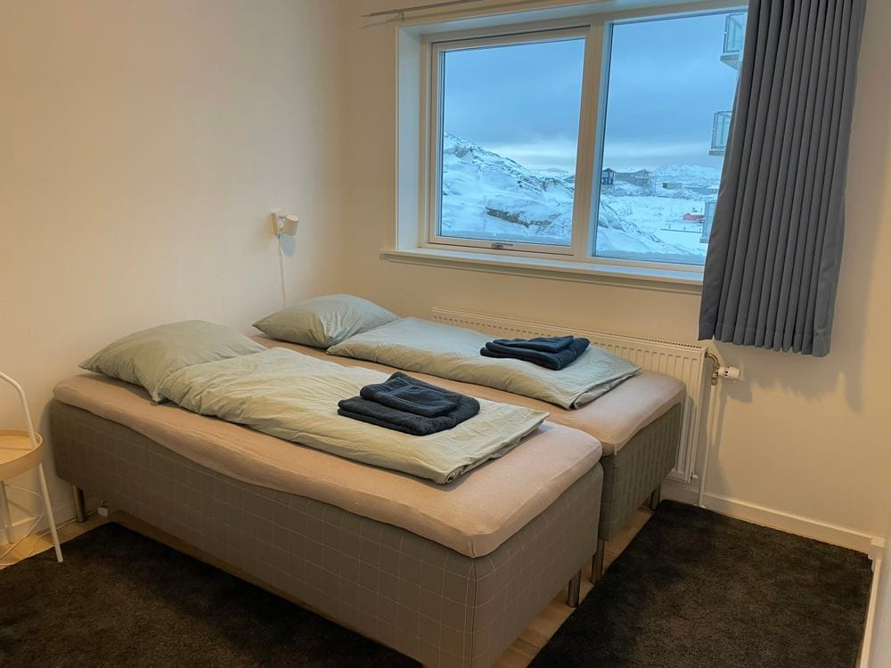 Mājīgs 2-istabu dzīvoklis Nuussuaq – ideāli piemērots 2–3 viesiem Izbaudiet gaišu 60 m² dzīvokli populārajā Nuussuaq rajonā. Tā ir ideāli piemērota pāriem, mazām ģimenēm vai darījumu ceļotājiem. Dzīvoklis atrodas klusā apkaimē, soļa attālumā no sabiedriskā transporta ar ērtu piekļuvi Nuuk pilsētas centram. Tuvumā atrodas arī vietējais lielveikals, veikali un kafejnīcas, kas piedāvā gan komfortu, gan ērtības uzturēšanās laikā Grenlandes galvaspilsētā.
