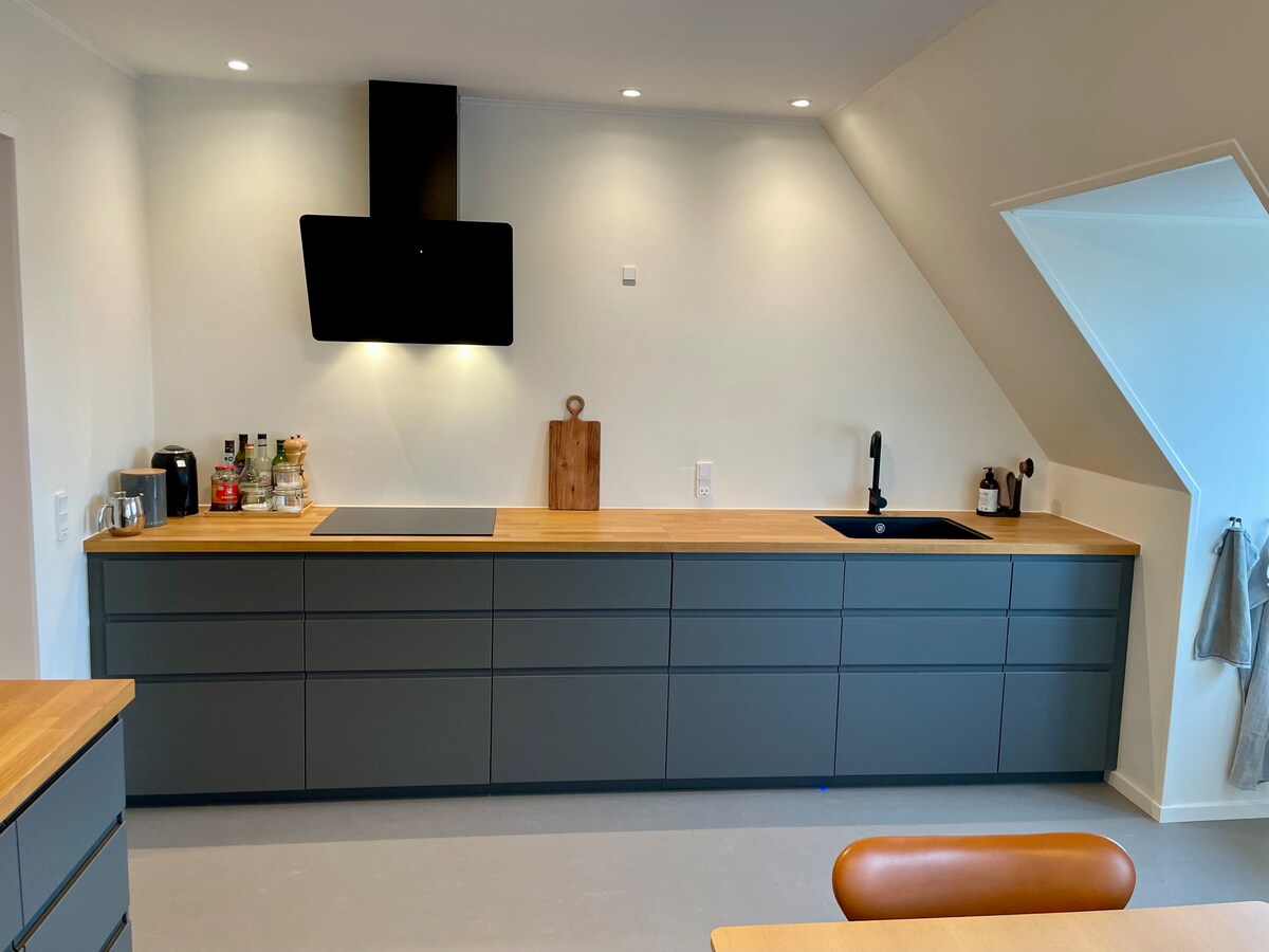 Dzīvoklis līdz 6 personām + bērniem. Atsevišķa ieeja un vannasistaba. Divguļamā gulta 140x200 cm + junioru gulta (140 cm) Papildu istaba 1. stāvā: divguļamā gulta (180x200 cm) + 2 vienguļamās gultas (70x200). (Pieejams, ja >2 pieaugušie). Ir neliela jauna virtuve ar cepeškrāsni, 2 plīts virsmām, trauku mazgājamo mašīnu, ledusskapi un kafijas automātu (bezmaksas kapsulas). Ir pieejams dārzs, gāzes grils, vienkārša āra virtuve un ezeri. Makšķerēšanas kartes var iegādāties tiešsaistē par 50 DKK. Atrodas gleznainā vietā starp diviem ezeriem, netālu no Odense.