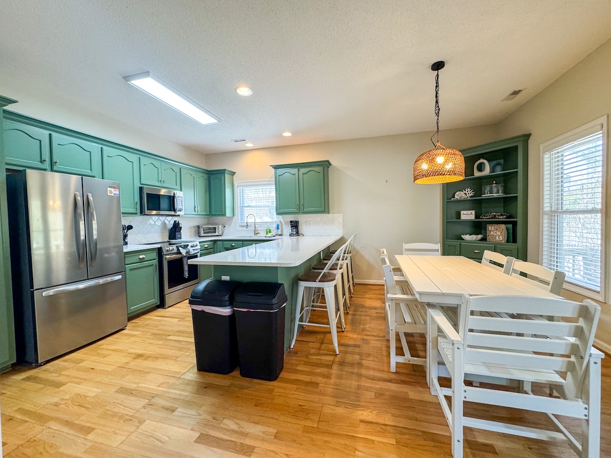 Mūsu 3BR kotedža sola svaigu un tīru piedzīvojumu, kas ir ideāli piemērots jūsu ģimenes pludmales nedēļai vai nedēļas nogales atpūtai. Tuvu visam, ko piedāvā Ozolu sala - smiltis, sērfošana, makšķerēšana, laivošana un riteņbraukšana - kā vien sirds kāro. Labi aprīkota virtuve, kur baudīt vakariņas vai palutināt sevi kādā no daudzajiem Oukailendas un Sautportas restorāniem. Viesi priecājas par ekrāna verandu ar piekaramo gultu "Kur jūs visu mūžu esat bijis" un jauno pagalma ugunskura vietu. Nāciet, atpūtieties un izbaudiet!