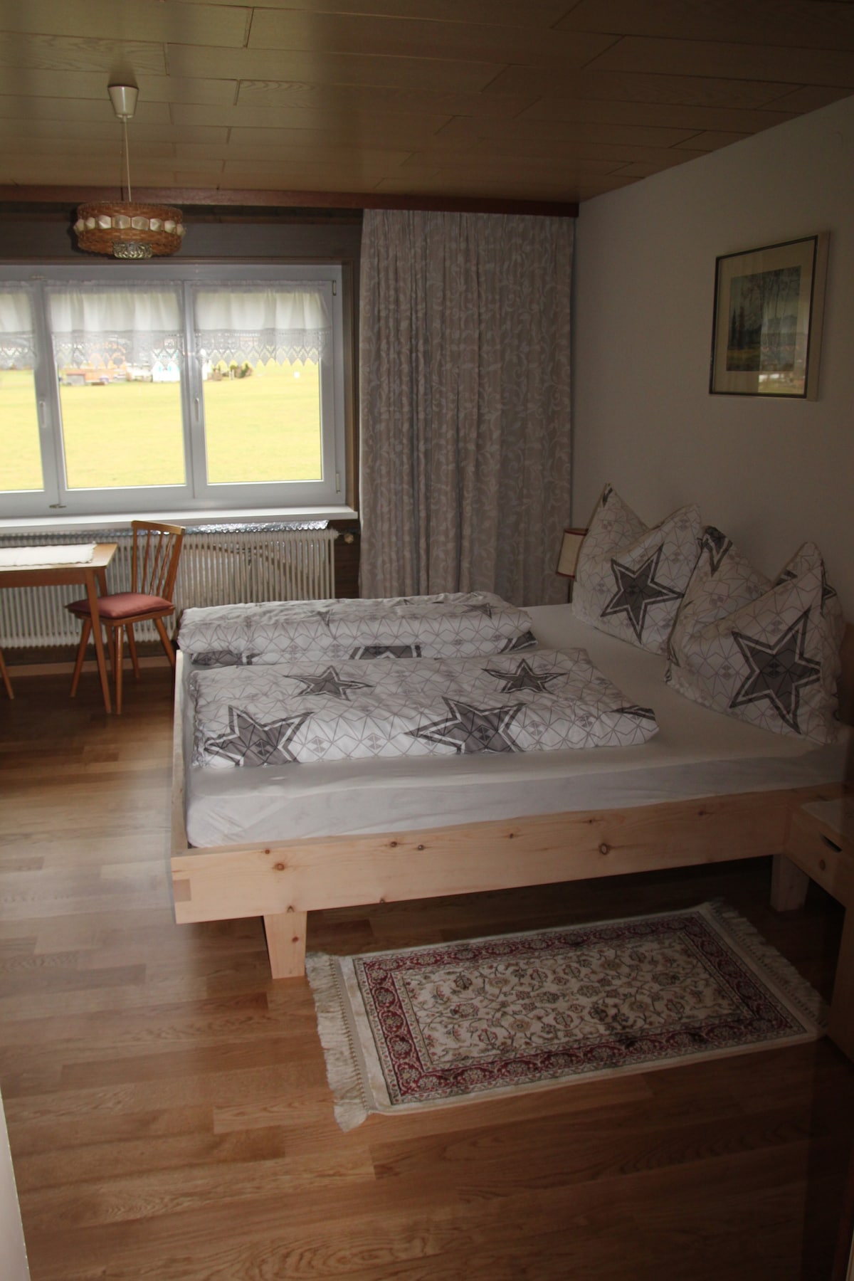 Numurā ir franču gulta 140/200, un tas ir piemērots pārim Tā ir pēc pieprasījuma ar brokastīm (15.-vpersona) un atrodas bijušajā viesu namā, kas ir ieelpots atpakaļ vecajā dzīvē. Istaba ir aizslēdzama. Brokastu telpa un terase ir koplietojama ar ne vairāk kā diviem citiem viesiem, kā arī vannasistabu un atsevišķu tualeti, kas atrodas uz mezonīna. Tā ir vēl viena istaba "Eichenbüchel", kas norādīta Airbnb.