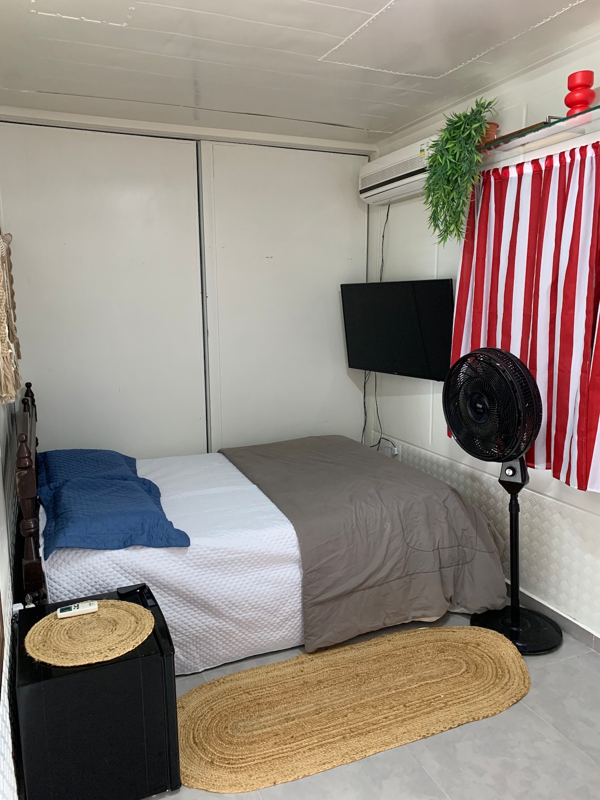 Izbaudiet vienkāršību šajā klusajā un labi izvietotajā mājoklī. Tā ir pilnībā aprīkota studija ar istabu, virtuvi un PRIVĀTU vannasistabu, kurā var uzturēties ne vairāk kā 2 cilvēki IEKŠĒJĀ STUDIJA BEZ IELAS SKATA. Ideāli piemērots, lai apmeklētu jūsu brīvdienas vai uzņēmējdarbību Mums ir skaists KOPĪGS viesu baseins Atrodas pie pilsētas ieejas Av, dažu metru attālumā no pludmales, pilsētas domes, foruma un Comcios