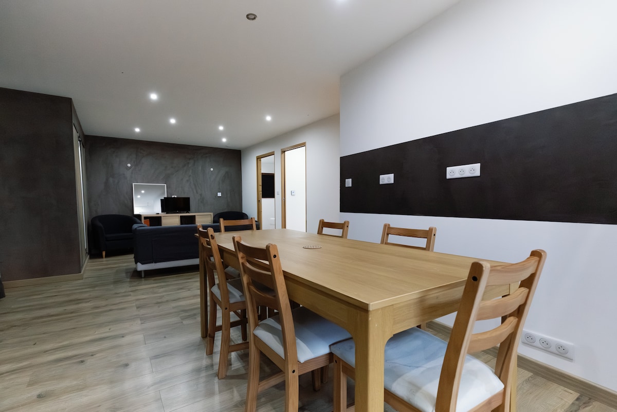 Dzīvoklis atrodas brīvdienu rezidencē ar bezmaksas piekļuvi apsildāmajam baseinam, tvaika pirtij, saunai un sporta zālei. Dzīvoklis sastāv no 1 guļamistabas ar divguļamo gultu, lielas viesistabas ar izvelkamu dīvānu un slēpošanas skapīti. Tas ir aprīkots ar trauku mazgājamo mašīnu, mikroviļņu krāsni, ledusskapi, kafijas automātu, tosteri, tējkannu, fēnu, televizoru... Bezmaksas autostāvvieta Piekļuve Les Sybelles nogāzēm un visām papildērtībām 5 minūšu laikā ar bezmaksas autobusu ik pēc 15 minūtēm.
