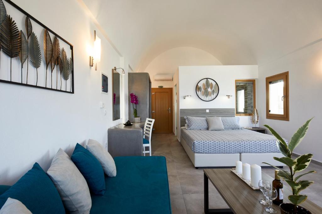 Šis luksusa numurs sastāv no atvērta plānojuma guļamistabas ar karaliska izmēra gultu un plašu viesistabu, vannas istabas ar lietus dušu un pilnībā aprīkotas virtuves ar mazu ledusskapi. Šis izsmalcinātais, dekorētais dzīvoklis var uzņemt līdz četriem cilvēkiem, kas vēlas atpūsties skaistā vidē, jo tas atveras uz sensacionālu privātu terasi ar apsildāmu alu mini baseinu, kas nodrošina gan kalderu, gan skatu uz jūru.