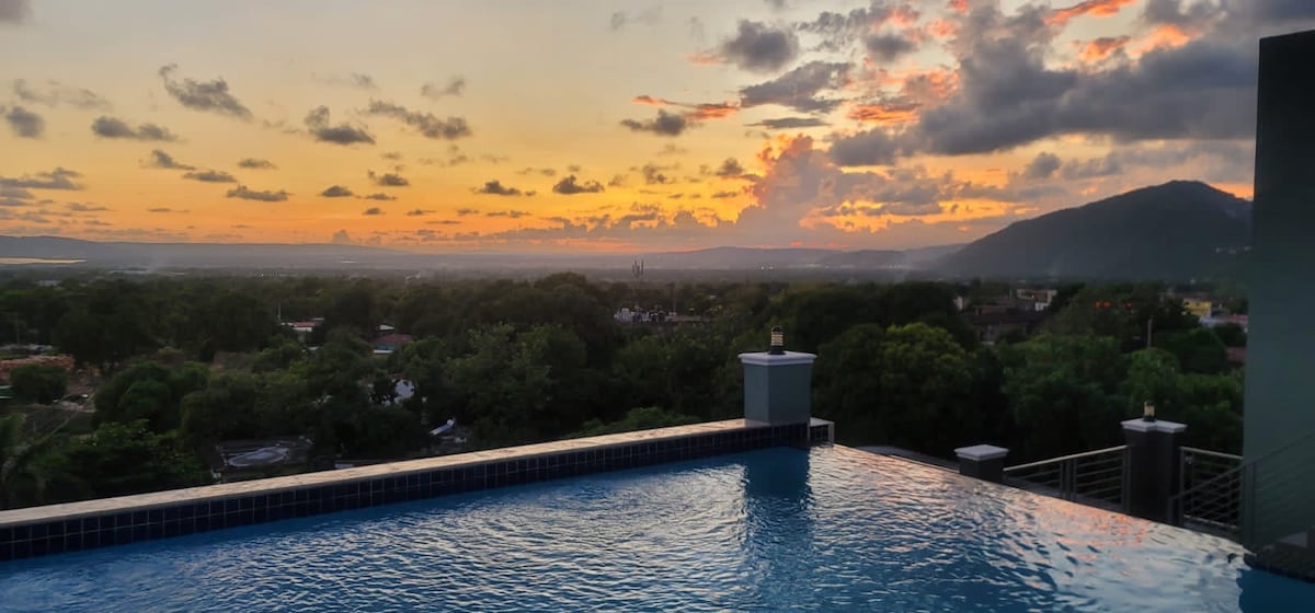 Skats uz pilsētu/okeānu, baseins, pludmale: kūrorts kā atvaļinājums