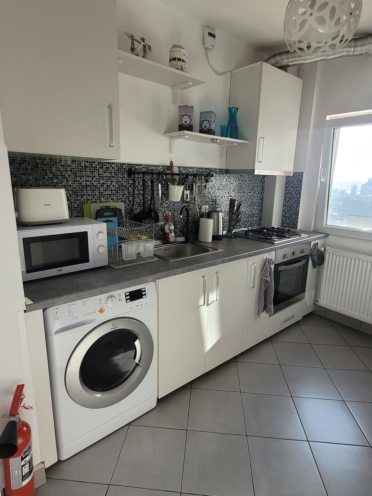 Ērts un moderns dzīvoklis ar satriecošu skatu no balkona, kas atrodas tuvu pilsētas centram (1 minūtes attālumā no Mihai Bravu metro stacijas), ar jumta dārzu un bezmaksas sporta zāli visiem viesiem. Bezmaksas autostāvvieta ēkas teritorijā. Dzīvoklis ir aprīkots ar grīdas apkuri un visām nepieciešamajām papildērtībām: - Veļas mazgātava - HD viedtelevīzija (iekļauts Netflix) - Kafijas automāts - Gludeklis - Pakaramie - Tīra gultasveļa - Dvieļi - Tīrīšanas līdzekļi - Galda piederumi - Šķīvji - Glāzes - Pannas un katli