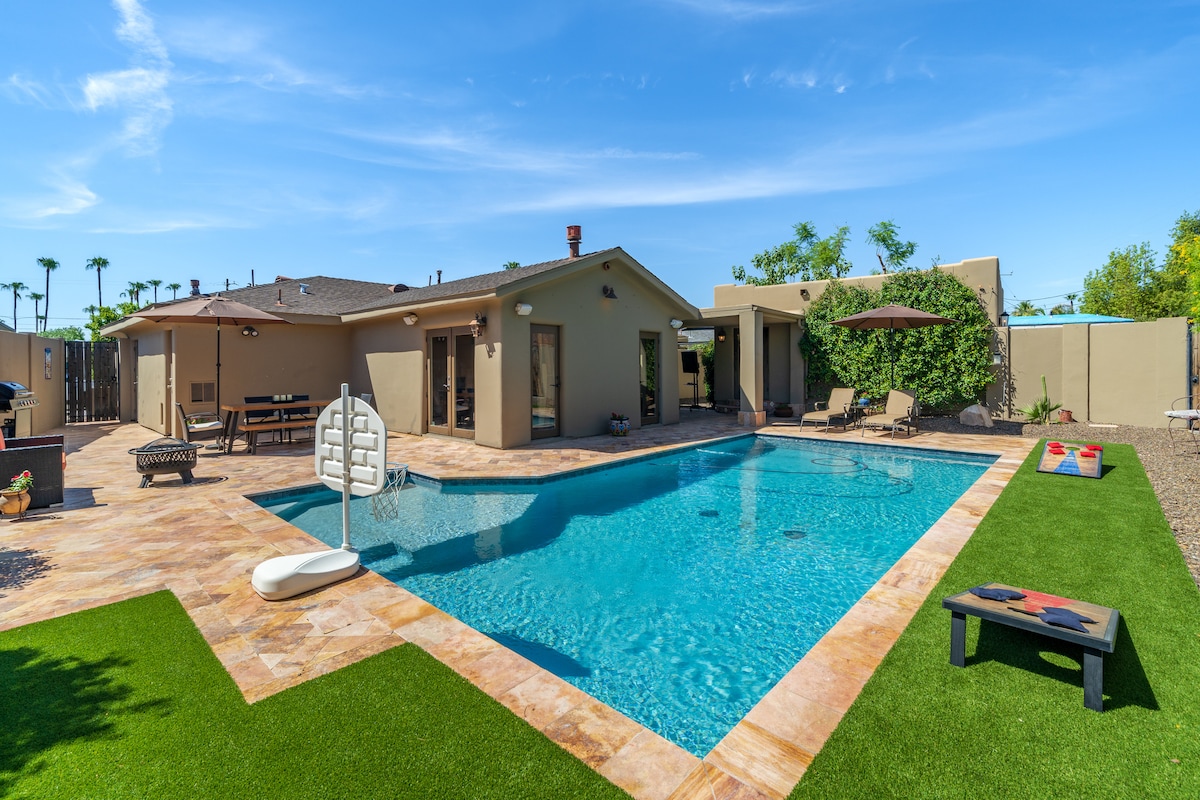 Jauna MĀJA! 2024. gada marts! BEZMAKSAS APSILDĀMĀ POOLIN ZIEMA UN BURBUĻVANNA + NULLE UZKOPŠANAS DARBU! NEMAKSĀJIET PAR BASEINA APKURI PIE KĀDA AIRBNB! - PAVISAM JAUNA, skaista pārbūvēta 3 guļamistabu māja ar kūrorta stila pagalmu, tikai dažu minūšu attālumā no Skotsdeilas vecpilsētas! Bezmaksas apsildāms baseins, burbuļvanna, ugunskura vieta, minigolfs, galda teniss, milzu šahs, + ātrākais Wi-Fi un viedtelevīzija! Māja ir pilnībā aprīkota ar papildu kafijas bāru, āra grilu un skaistāko kūdru visai ģimenei! KABEĻTELEVĪZIJA!