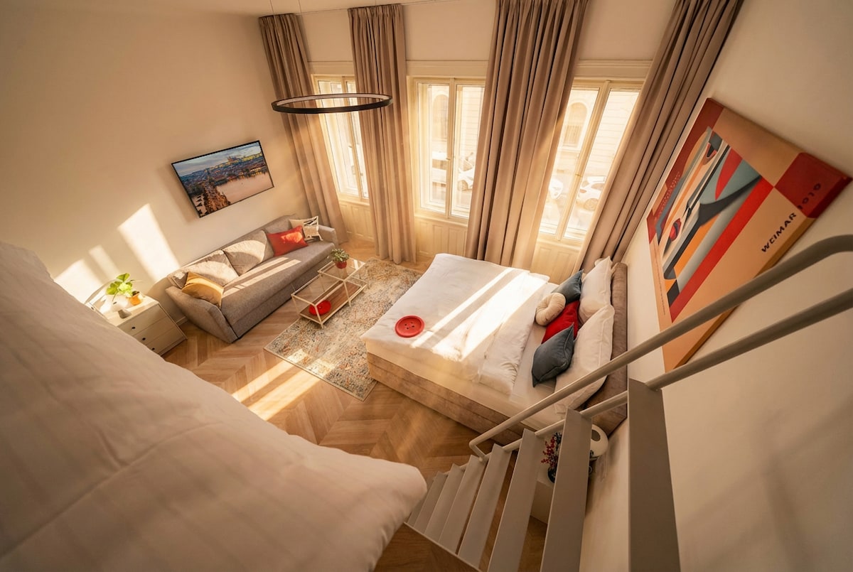 Laipni lūdzam mūsu stilīgajā dizaineru dzīvoklī Prāgas sirdī! Šī mājīgā un modernā telpa apvieno komfortu un eleganci, kas ir ideāli piemērota gan atpūtai, gan darījumu braucieniem. Atrodoties tikai 2 minūšu attālumā no Wenceslas laukuma un pastaigas attālumā no Prāgas ikoniskajiem apskates objektiem, kafejnīcām un restorāniem, jūs atradīsieties pašā pilsētas sirdī. Izbaudiet neaizmirstamu uzturēšanos šajā skaisti iekārtotajā dzīvoklī, piedāvājot ideālu bāzi jūsu Prāgas piedzīvojumam!