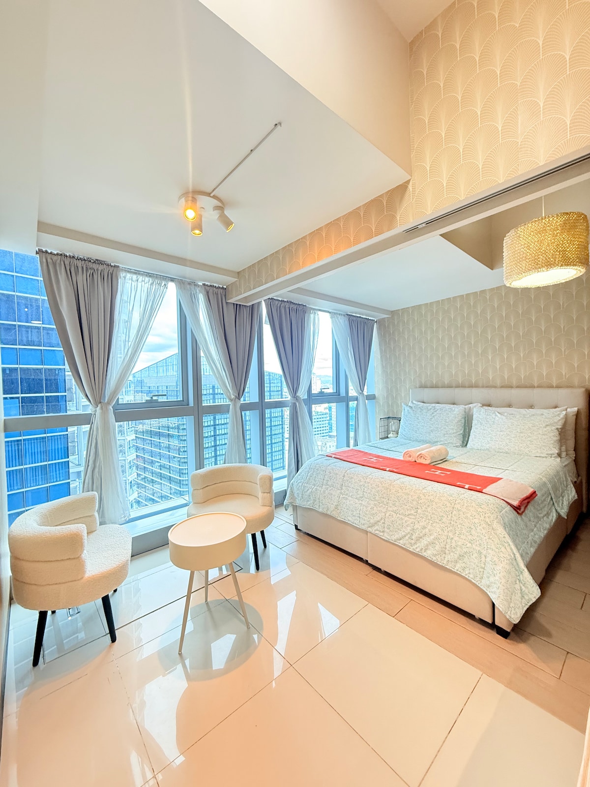 Laipni lūdzam unikālā atpūtā Uptown Parksuites BGC! Apbalvots kā Airbnb populārākais 1% un viesu iecienītākais! Apmetieties luksusa 1 guļamistabā ar balkonu, no kura paveras brīnišķīgs skats uz pilsētu. Atrodas pašā Uptown Bonifacio sirdī, soļu attālumā no starptautiskām maltītēm, iepirkšanās un izklaides vietām. Izbaudiet kūrorta stila papildērtības, piemēram, baseinus un burbuļvannu. Ērtības labad Landers Superstore, kafejnīcas un daudz kas cits atrodas tieši apakšstāvā. Izpētiet Uptown Mall un pirmo japāņu tematikas "Mitsukoshi" tirdzniecības centru tieši otrpus ielai.