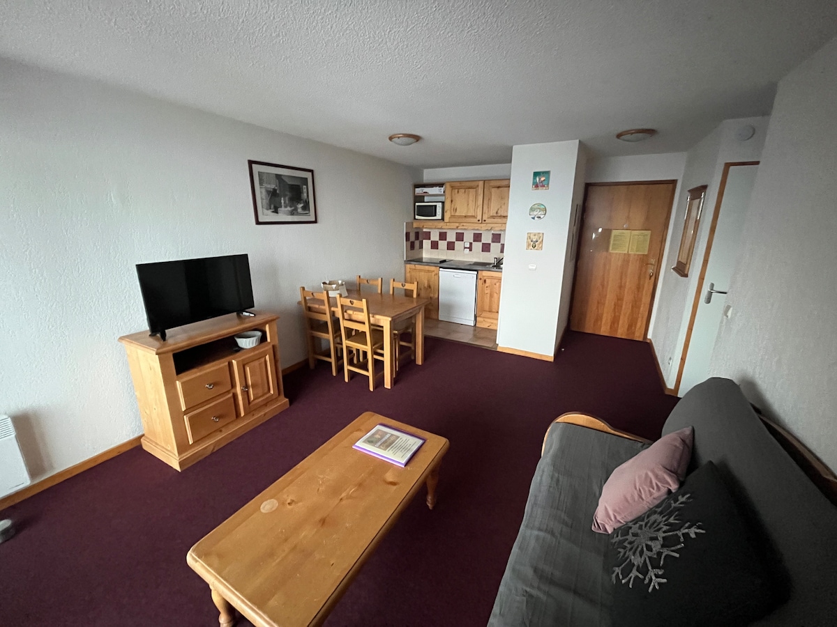 Namiņa studija (32m²) 80 m no sniega priekšpuses un segta autostāvvieta. 5 gultas: guļamzona, slēgta ar aptumšojošiem aizkariem: 1 gulta 2 pers. un 1 divstāvu dzīvojamā istaba: clic-clac 2 p Plaša dzīvojamā istaba ar aprīkotu virtuvi (mikroviļņu krāsns/grila krāsns, Senseo kafijas automāts, raclette un fondue ierīces, trauku mazgājamā mašīna, TV, Wi-Fi; Balkons S/O. Skaists skats nav aizmirsts. Duša, tualete, fēns, gludeklis. Slēpju/velosipēdu skapītis (2) Ir pieejama gultas veļa, tualetes piederumi, sadzīves un tualetes piederumi. Iekļauta uzkopšana