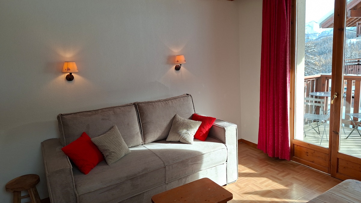 Mēs piedāvājam nesen renovētu 30 m2 dzīvokli ar uz dienvidiem vērstu balkonu. Pēc ierašanās jūs atradīsiet izgatavotas gultas, kā arī dvieļus . Ideāli piemērots slēpošanai , pārgājieniem un netālu no veikaliem. 200 m no slidotavas baseina. Virtuve ir aprīkota ar trauku mazgājamo mašīnu, cepeškrāsni, mikroviļņu krāsni , nespresso kafijas automātu, raclette cepeškrāsni.