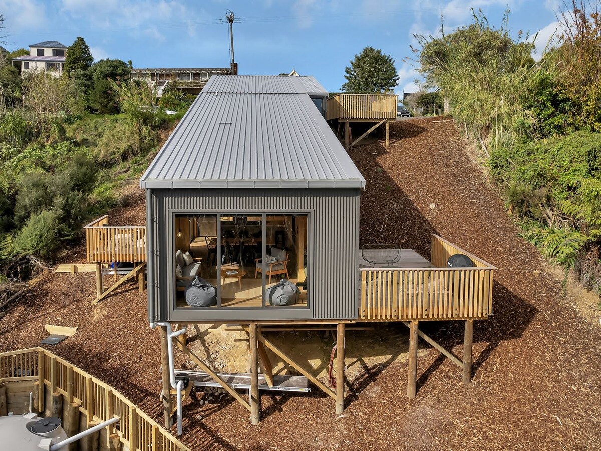 Ideāla vieta, kur atpūsties un izbaudīt dabas skaistumu - šis ir mūsu jaunuzceltais otrais namiņš, kas gaida jūsu ierašanos. Mājīgi sēžot Opua krūma vainagā un 4 akru kvartālā, baudiet brīnišķīgu privātumu, vienlaikus atrodoties ideālā vietā īsas pastaigas vai 2 minūšu brauciena attālumā no Opua jahtu piestātnes un 5 minūšu brauciena attālumā no Paihia pilsētas. Ja ceļojat kopā ar citiem, varat apskatīt otru mūsu namiņu tajā pašā īpašumā: https://www.airbnb.com/h/treetoptranquility1