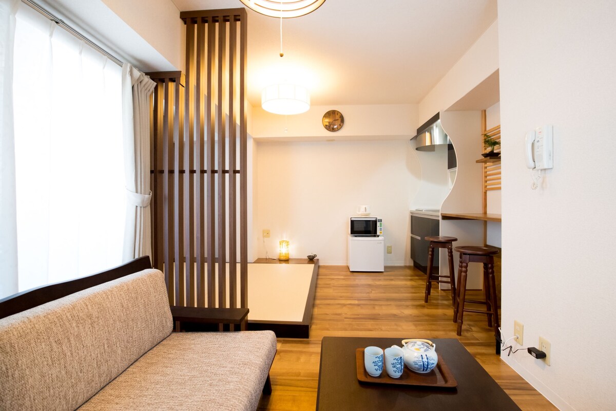 Dzīvoklis atrodas blakus Nihonbashi metro stacijai rosīgajā tirdzniecības centrā Chuo-ku, Osakā.Ir jaunuzcelta liela kurpe, kas aprīkota ar jaunāko zemestrīces aizsardzību, ugunsdzēsības iekārtām, dzīvokļa pirmais stāvs ir diennakts veikals 7-11, ko ieskauj pārtikas un diennakts aptiekas, ļoti ērts transports, 20 metru attālumā no metro stacijas, 50 metru attālumā no Dotonbori, 100 metru attālumā no Kuromon Market, liels autobuss uz Kansai lidostu 3 minūšu gājienā, Shinsaibashi, Namba 5-10 minūšu gājiena attālumā!Istaba ir pilnībā aprīkota, grezni iekārtota, mājīga un jūtas kā mājās!