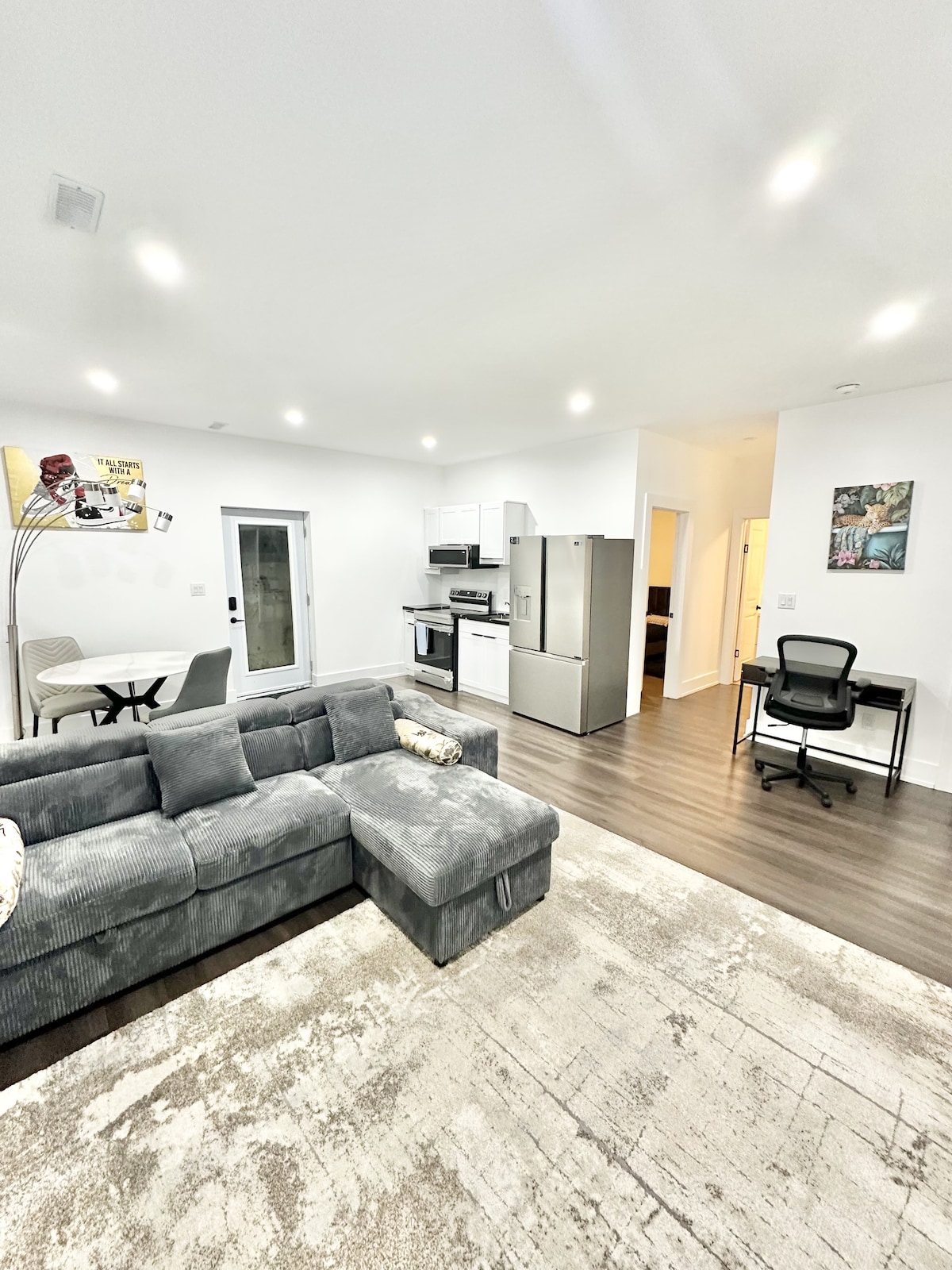 Cozy and private 1-bed studio, ideal for short or extended stays, well-equipped for convenience and relaxation. ✔︎ Spacious private suite with full Bath ✔︎ 55-inch 4K TV with Netflix, Prime, Crave, Fibe TV, YouTube, etc ✔︎ Super Fast WiFi ✔︎ Self check-in ✔︎ Workstation ✔︎ 5 mins drive - 401, Downtown, Malls, Grocery, Pharmacy, Restaurants, Cineplex. ✔︎ Free Parking on driveway ✔︎ In Unit Washer & Dryer ✔︎ Kitchenette - Fridge, Microwave, Kettle, Toaster, Coffee maker, utensils & supplies.