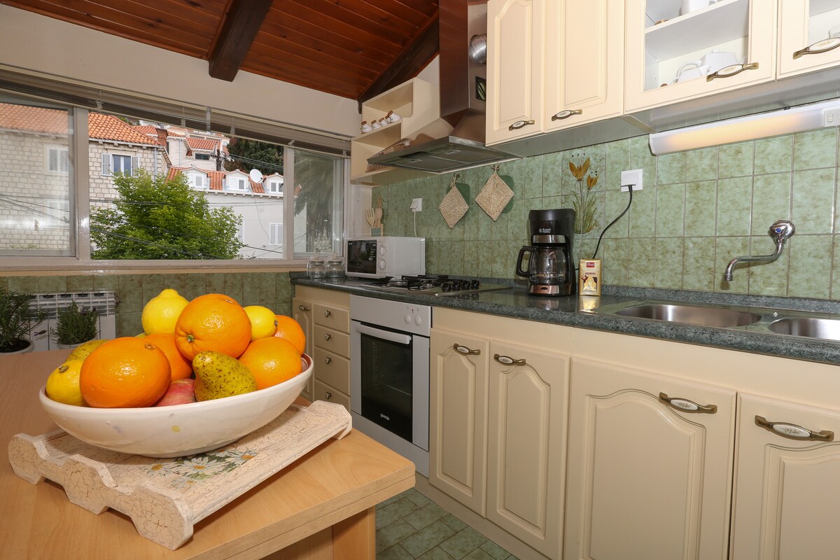 Skats uz Adrijas jūru, divu guļamistabu māja atrodas tikai dažu soļu attālumā no Dubrovnikas vecpilsētas, populārās Banje pludmales, kabeļtelevīzijas automašīnas,veikaliem un restorāniem, no kuriem paveras satriecošs skats uz pilsētas sienām, akmens tiltu, veco ostu, jūras krastu un Lokruma salu. Dubrovnika ar vairāk nekā 250 saulainām dienām gadā un satriecošu skatu uz Adrijas jūru ir populārākais galamērķis ikvienam, kurš vēlas vērot sauli zem apvāršņa, apelsīnu un burvīgo rotaļu vidū.
