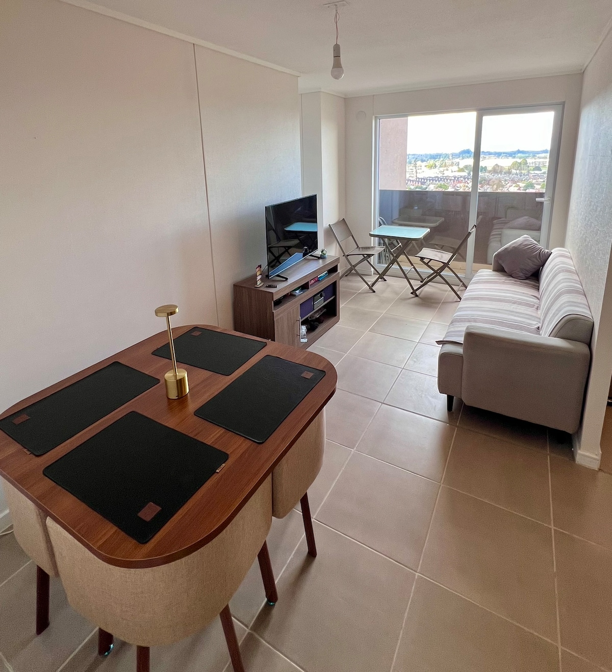 Ērts dzīvoklis slēgtā daudzdzīvokļu namā Osorno austrumu daļā. Vienā pusē no 5. ceļa uz dienvidiem, kas ļauj tieši iziet uz tūrisma zonām šajā reģionā. Diennakts apsardze, vārti, ko kontrolē dienas un nakts konsjeržs, zaļās zonas, bērnu rotaļu laukumi un privāta autostāvvieta. Dzīvoklī ir pieejamas gultas līdz 5 personām. Virtuve aprīkota ar visu nepieciešamo. Pieejams internets, veļas mašīna un apkure