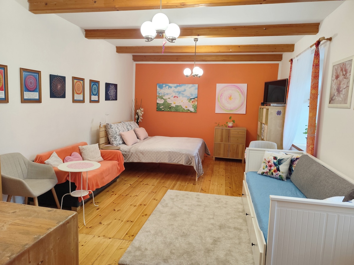 Mājīgs dzīvoklis vecākā ģimenes mājā netālu no Ostravas centra - 10 minūšu brauciens ar autobusu līdz pilsētas centram. Izmitināšana 2-4 personām - atsevišķa neliela guļamistaba ar divguļamo gultu un ģērbtuvi, dīvāngulta viesistabā 1-2 personām, ēdamistaba ar lielu ēdamgaldu, pilnībā aprīkota virtuve, vannasistaba ar dušu, tualete un veļas mašīna.