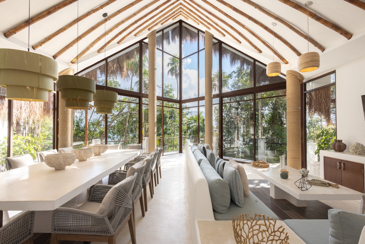 Mierīga, maģiska māja tieši pie Bakalara lagūnas, ideāli piemērota pāriem vai nelielām ģimenēm, kurām patīk daba un privātums. Peldieties no privātas piestātnes, dodieties izpētīt apkārtni ar kajakiem vai atpūtieties šūpuļtīklā, vērojot saulrietu un saullēktu. Pilnībā aprīkota virtuve un Starlink Wi-Fi atpūtai vai attālinātam darbam. Tikai 15 minūšu brauciens ar skatu no Bakalāras pilsētas – daļa ceļa ir neasfaltēta un nelīdzena, tāpēc brauciet lēnām un izbaudiet braucienu pa džungļiem. Laipni lūdzam paradīzē, kurā vienkārši "būt".