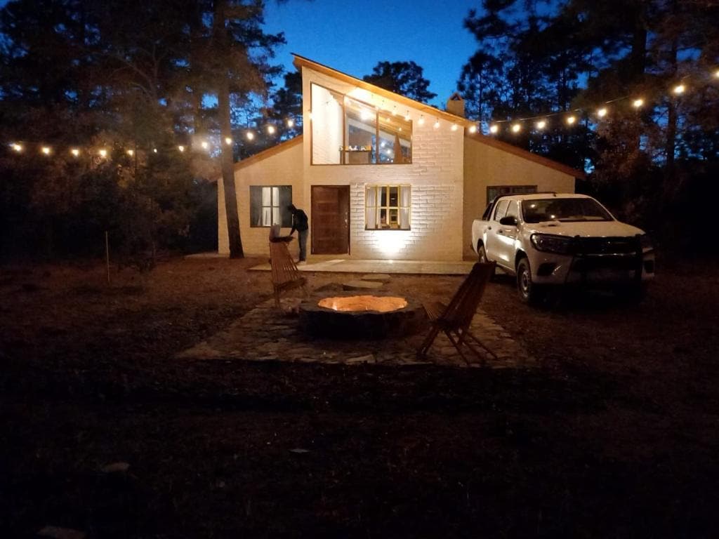La cabaña está hecha de adobe y madera, es un lugar totalmente acogedor, la hicimos con mucho amor!. Te encantará tomar una taza de café por las mañanas en las mecedoras o bien observar la naturaleza 🌲desde tus ventanas, y por las noches hacer una fogata 🔥 sentarte alrededor, y asar bombones en compañía de toda tu familia o amigos, o bien porque no una exquisita copa de vino 🍷. Vive la experiencia..