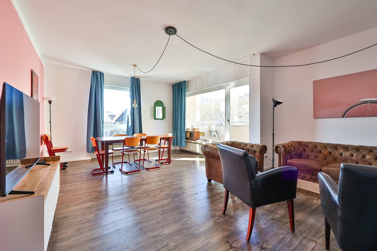 Nesen un stilīgi atjaunots četru istabu augšstāva dzīvoklis (pilnīga renovācija 11/2025) tieši pretī Karlsrūes galvenajai stacijai. Gaiša vannasistaba ar vannu, atsevišķa tualete, labi aprīkota virtuve ar ēdamzonu un skatu uz zaļo zonu. Franču balkoni ar skatu uz pilsētu un Pfalcu. Ideāli piemērots ģimenēm, grupām, atpūtai pilsētā un darījumu braucieniem. Stingri nesmēķējošu mājoklis (iekšpusē un balkonā, papildu uzkopšanas maksa). Kaislīgi saimnieki kopš 2019. gada. Kartes depozīts (250-1000 €), ja nepieciešams.