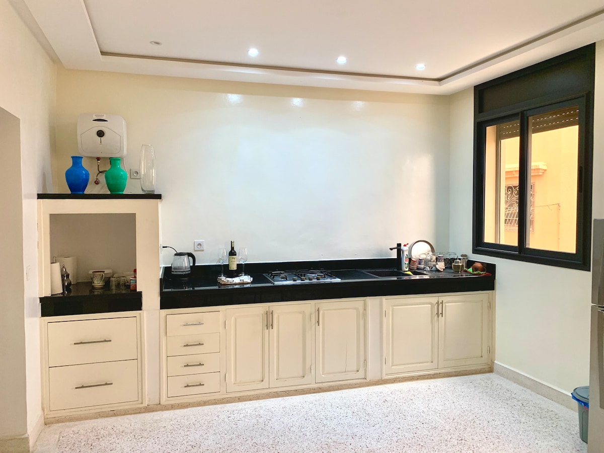 Logement à proximité du souk, hammam, commerces et salons de massage. Facilité de parking. Appartement au premier étage avec porte sécurisée par interphone.