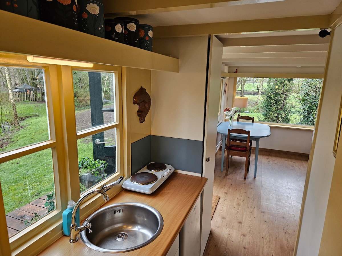 Skaista koka māja, kas atrodas manu vecāku pagalmā. Atpūtieties zaļuma oāzē no pavasara līdz rudens sākumam, izbaudiet brīnišķīgi siltu rudens sajūtu, kad koki maina krāsu, vai baudiet mājīgumu ziemas mēnešos. Skaistajā apkārtnē ir daudz vietu, ko apmeklēt. Giethoorn, cietokšņa pilsēta Steenwijk un Havelterheide. Turklāt tuvumā atrodas trīs nacionālie parki: Weerribben Wieden, Drents Friese Wold un Dwingelderveld.