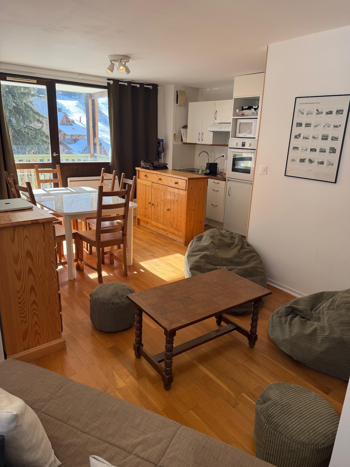 Laipni lūdzam mūsu mājīgajā 90 m2 lielajā ligzdā, kurā var uzturēties 6 cilvēki neaizmirstamai atpūtai ģimenēm vai draugu grupām! Mūsu dzīvoklis ir plašs un ērts, ideālā vietā, dažu soļu attālumā no Bourg d 'Oisans centra. Neatkarīgi no tā, vai jūs aizrauj riteņbraukšana vai pārgājieni dabas ieskautā vidē, tā ir vieta, kur izbaudīt visu, ko piedāvā kalns.