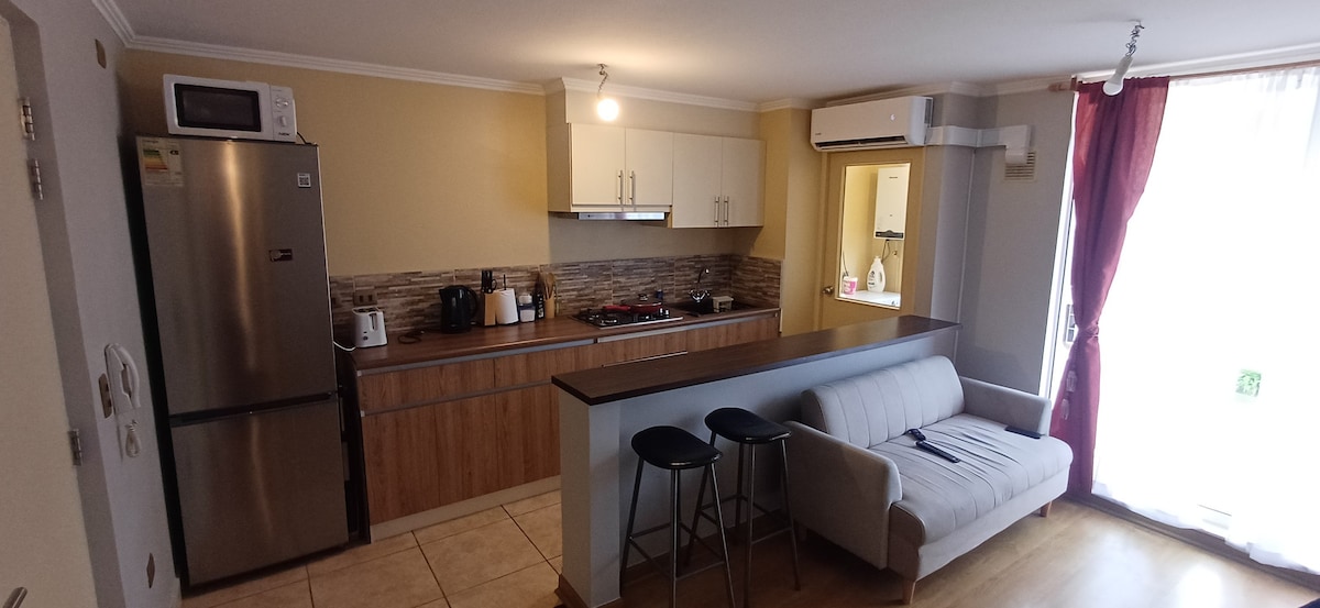 Izbaudiet šo dzīvokli lieliskā vietā, 100 metru attālumā no Casino Dreams Temuco un 500 metru attālumā no Portal Temuco ar lielveikalu, veikaliem un restorāniem. Netālu no Plaza Aníbal Pinto, Pinto gadatirgus, dzīvīgās Avenida Germania, muzejiem, Parque Estadio Germán Becker un Cerro Ñielol ar panorāmas skatu. Jūs gaida komforts, drošība un unikāls piedzīvojums. Rezervējiet tūlīt un pilnībā dzīvojiet Temuko!